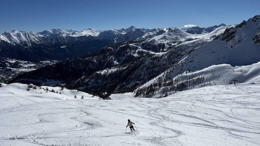 Parlons maintenant d’un secteur que j’adore particulièrement : Serre Pelat. Accessible par le téléski de Serre Blanc ou le télésiège du Rocher Blanc, c’est l’endroit parfait pour ceux qui cherchent à skier tranquille sous le soleil des Alpes.